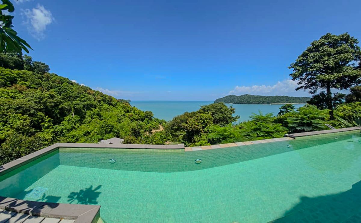 Escape to a paradise at this stunning A-frame villa on the island of Langkawi Experience of modern tropical design meets breathtaking nature. Infinity pool as it blends seamlessly with the horizon, framing the majestic Gunung Raya mountain in a postcard-perfect view. Open-plan living area and fully equipped kitchen Master bedroom on the first floor with a king-sized bed and a private balcony. Just 5 minutes from the airport and 15 minutes from the vibrant Cenang Beach.