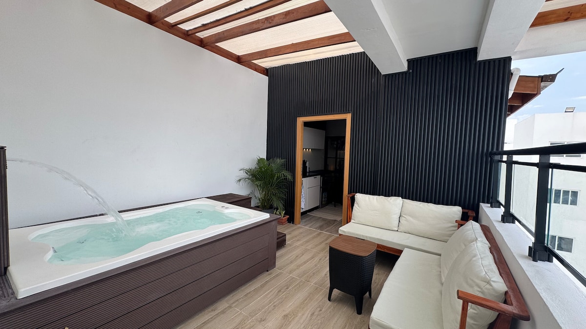 oog: - We hebben bier te koop in de koelkast. - Parkeren is voor het pand door de auto op de stoep te zetten. Het is een omheinde woonwijk. Apartamento completo Badkamers Eetkamer Keuken TERRAS MET PRIVÉJACUZZI. Goed gelegen in de buurt van winkelcentra zoals: Plaza Duarte-Carrefour, Pricesmart, Bravo Supermarket, Plaza Lama. *De jacuzzi wordt na 3 uur automatisch uitgeschakeld *Barbecue: heeft extra kosten.
