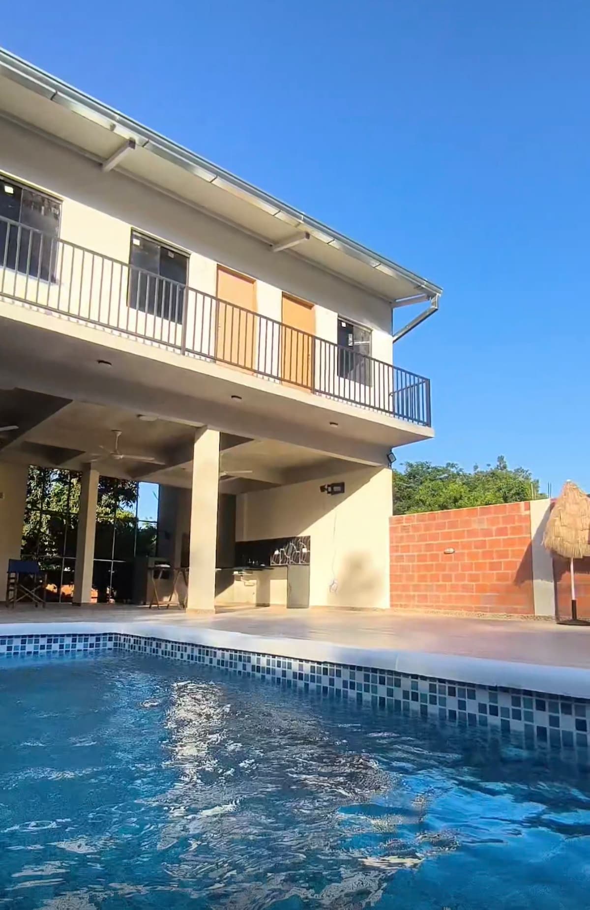 Geniet van deze rustige en minimalistische nieuw gebouwde woning. De villa ligt op 5 minuten van het centrum van San Bernardino en een blok van Aqua Village. Het huis heeft drie slaapkamers, twee badkamers, een woonkamer die aan de keuken is bevestigd en een quincho met grill die rechtstreeks met het huis en met het zwembad verbonden is via een dek/solarium met toegang tot de tuin. Alle kamers, inclusief de woonkamer, hebben AA warm/koud. Ideaal voor een weekend of langer seizoen!