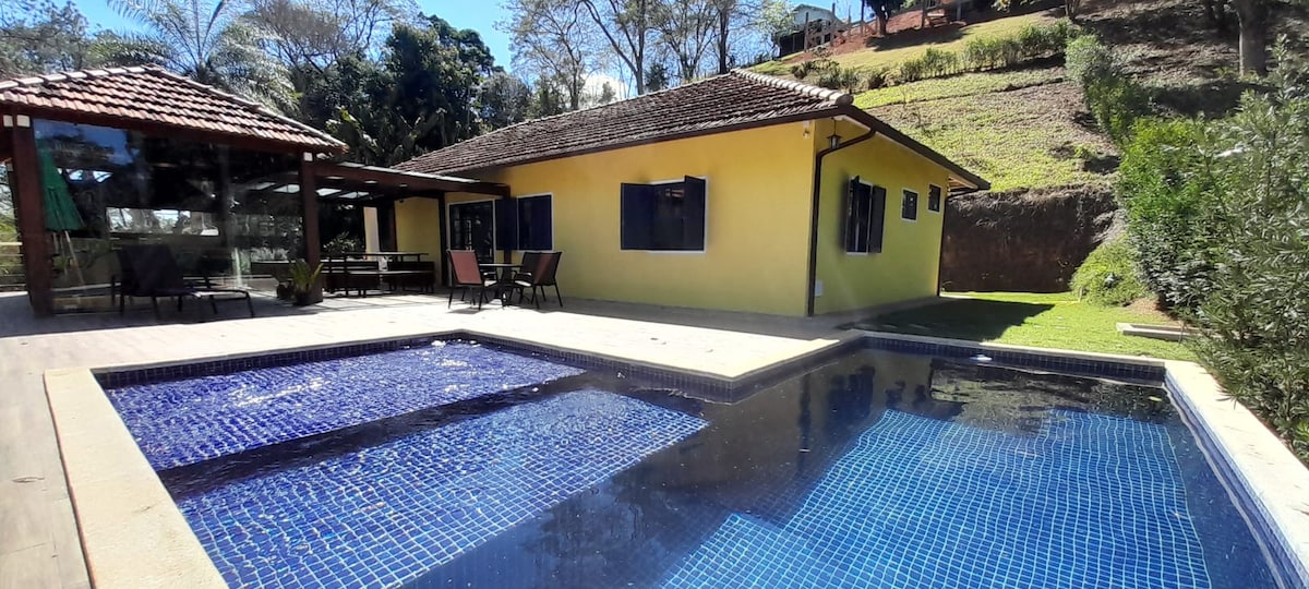 Welkom in Mirante, een toevluchtsoord hoog in de bergen met een adembenemend uitzicht! Ons gelijkvloers huis is perfect voor gezinnen, kinderen en ouderen en biedt comfort, luxe en toegankelijkheid. Met vijf suites, een verwarmd overloopzwembad, een sauna, een bubbelbad, een veld en een gastronomische ruimte, compleet met barbecue en pizzaoven, is elk detail ontworpen voor je beste ervaring. Volledig uitgerust, het is de ideale plek om tot rust te komen en onvergetelijke momenten te creëren.
