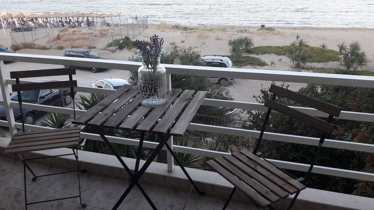 Het kleine appartement is gelegen aan het strand, in het centrum van de stad. Zeer dicht bij restaurants, cafés,bakker,supermarkt en apotheek. Er zijn ook strandbars,surfclubs met parasols en stoelen. Het busstation ligt op 2' afstand, terwijl de afstand van de haven van Rafìnas en de luchthaven van Athene op 5 km ligt, en ik kan op elk moment een taxi regelen voor je transfer. Het appartement heeft twee kamers met een tweepersoonsbed en een slaapbank, een badkamer en een keuken. Ik ben blij om je te zien!