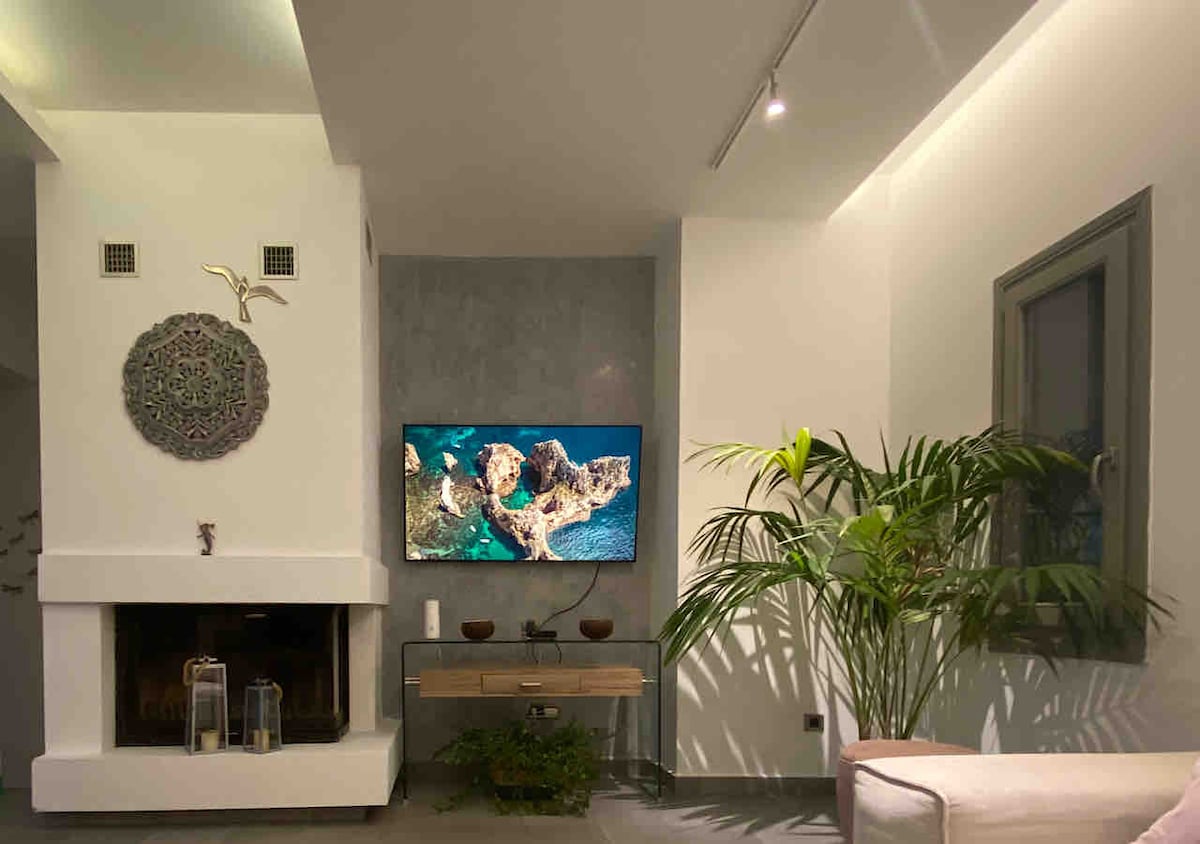 Een mooi, stedelijk chique, 2e verdieping appartement (zonder lift), onlangs gerenoveerd, met een groot terras. Het appartement van Nastia ligt op 15 minuten lopen van het centrum en de haven. In 5 minuten kun je het Industrie- en het Textielmuseum van Hermoupolis bezoeken. In de omgeving zijn er ook supermarkten, een apotheek, een ziekenhuis, een sportschool en een bakkerij. Het is ideaal voor thuiswerkers, want het is ruim en heeft alle voorzieningen en benodigdheden voor het dagelijks leven. Snelle en gratis wifi, een prachtig terras om te ontspannen en ook om te werken.