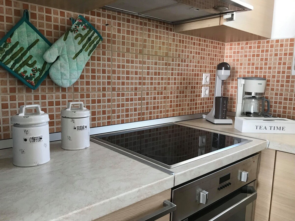 Welkom in ons gezellige appartement op de begane grond 85 q.m, perfect voor kleine gezinnen en voor mensen die van rust , natuur en kwaliteit houden tijdens hun vakantie! Deze charmante ruimte is voorzien van een tweepersoonsbed en 2 banken, comfortabel geschikt voor maximaal 5 gasten. Geniet van een schilderachtig balkon met uitzicht op de tuin. Geniet van buiten dineren met onze barbecueplek en grote tafel, terwijl je geniet van het weelderige uitzicht op de tuin. Op slechts 500 meter van het strand van Kalamitsa en op 2,5 km van het stadscentrum ontmoet gemak hier comfort.
