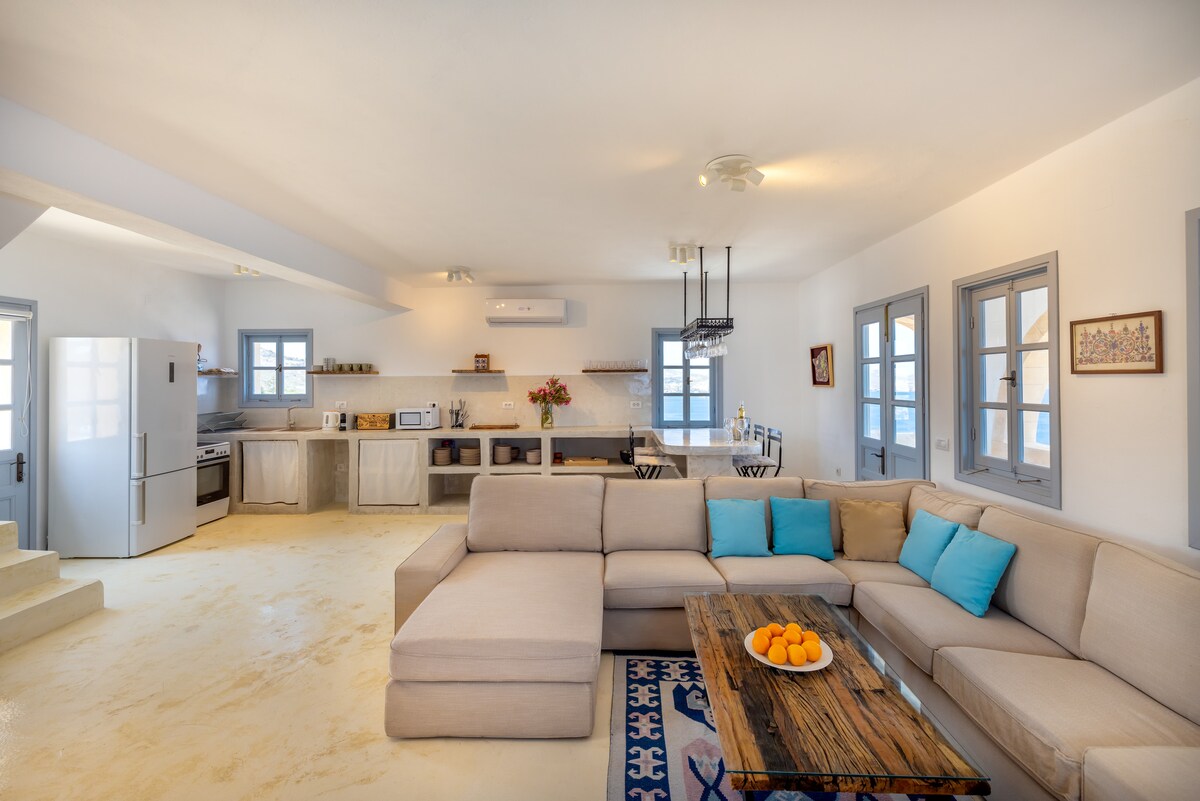 Word wakker met eindeloos blauw uitzicht op de Egeïsche Zee in een traditioneel stenen appartement in het pittoreske vissersdorpje Panteli, Leros. Geniet van de rust van het eiland vanuit een slaapkamer van 35 m² met een tweepersoonsbed van 160×200 cm, een badkamer van 10 m² en een buitenkeuken met een panoramisch uitzicht op de zee en het dorp. Op slechts 5 minuten van tavernes en winkels, en op slechts 500 m van het strand. Een authentieke eilandvilla met een uitzicht dat zo op een ansichtkaart thuishoort.