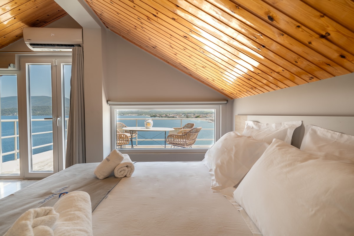 Onze Maisonette met Zeezicht, met drie slaapkamers en twee badkamers, combineert moderne esthetiek met gezellige charme. De volledig uitgeruste keuken is perfect voor culinaire liefhebbers en de ruime woonruimtes bieden een ideale setting voor quality time. Stap op je eigen patio of balkon om te genieten van een adembenemend uitzicht op zee. Geniet van de luxe van je privézwembad en verbeter je verblijf met een verfrissend waterretraite. Bij Cavos Boutique Homes zorgt onze toegewijde medewerkers voor een uniek en onvergetelijk verblijf