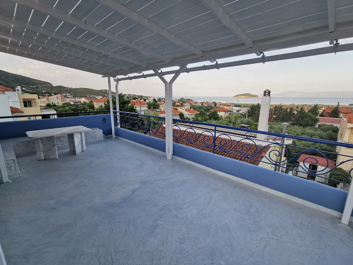 Een zeer ruim huis(87 m ²) op een paar minuten afstand van het strand, volledig uitgerust met een geweldig uitzicht en een grote, mooie tuin. Ook gelegen in een rustige buurt en in de buurt van een klein bos, ideaal voor middagwandelingen. Kavala-stad ligt op acht km afstand en er is een minimarkt en tavernes in de buurt.