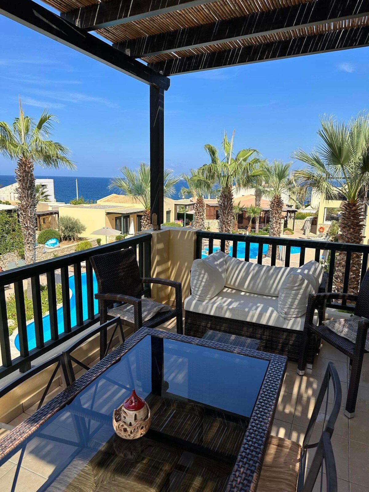 "Joe's Place", A stunning apartment which is a stone throw from the sea and within walking distance to the stunning traditional fishing village of Panormo. No car need for this holiday as everything is within walking distance. The area is safe and the perfect location for a relaxing holiday. So close to the seafront that you can hear the sound of the waves from the master bedroom. Centrally located on the island so its a great place to user as base to explore the island