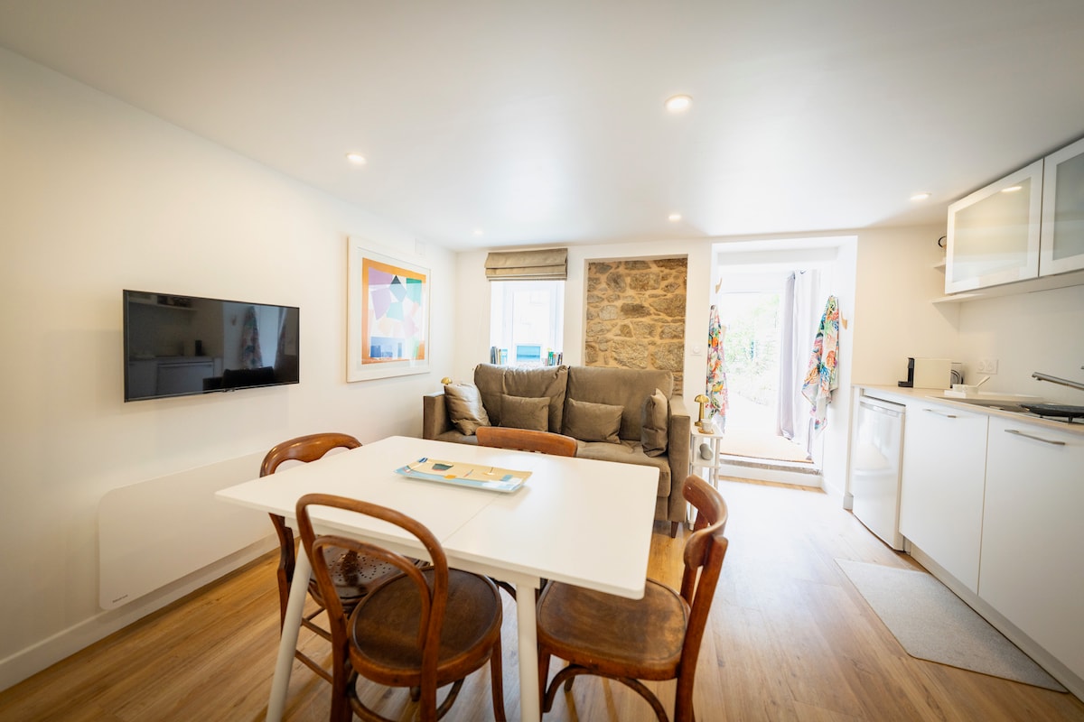 Laat je in het hart van Dinan meeslepen door de elegantie van het oude Rome. Ontspan in een luxe suite met een eigen balneo🛁. Geniet van het comfort van een queensize bed met 🛏️hotelbeddengoed, uitgeruste keuken, verbonden tv met Netflix, glasvezelwifi en een intiem terras. Op steenworp afstand van de Klokkentoren en het pittoreske Jerzual. Parkeergelegenheid, restaurants en winkels in de buurt. Alles komt samen voor een onvergetelijk romantisch uitje❤️.