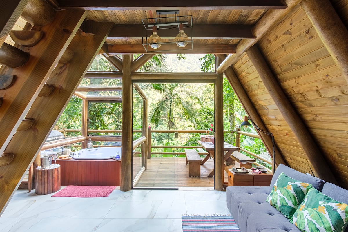 Ontdek Forest Chalet, een unieke plek die veel charme en warmte biedt midden in het prachtige Serra da Bocaina-bos in Paraty. Een romantische plek, waar we om elk detail geven, zodat je een onvergetelijke ervaring hebt: omgeven door natuur en met comfort en privacy. + Prachtig uitzicht op het bos + Privacy + 500 Mbps snel internet met optische vezel en wifi + Warme en koude airconditioning + Watervallen op het terrein + Complete keuken + En... veel rust!