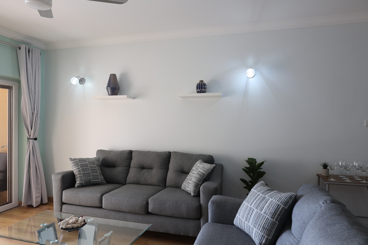 Volledig appartement met woonkamer, slaapkamer, badkamer en kitchenette, geweldig voor 1 - 3 gasten. Dicht bij de luchthaven, perfect voor een kort verblijf of afspraken met de Amerikaanse ambassade. Ook vlakbij DHL voor Canadese visa. Als je een Ross-student bent... Het appartement ligt NIET in de dorpen, we zijn in de aangrenzende gemeenschap. Ross-studenten kunnen informeren naar verblijven voor de langere termijn. We raden gasten aan om een auto te huren voor een verblijf van meer dan 2 dagen. Het appartement is NIET geschikt voor huisdieren, kinderen jonger dan 10 jaar of personen met een beperking.