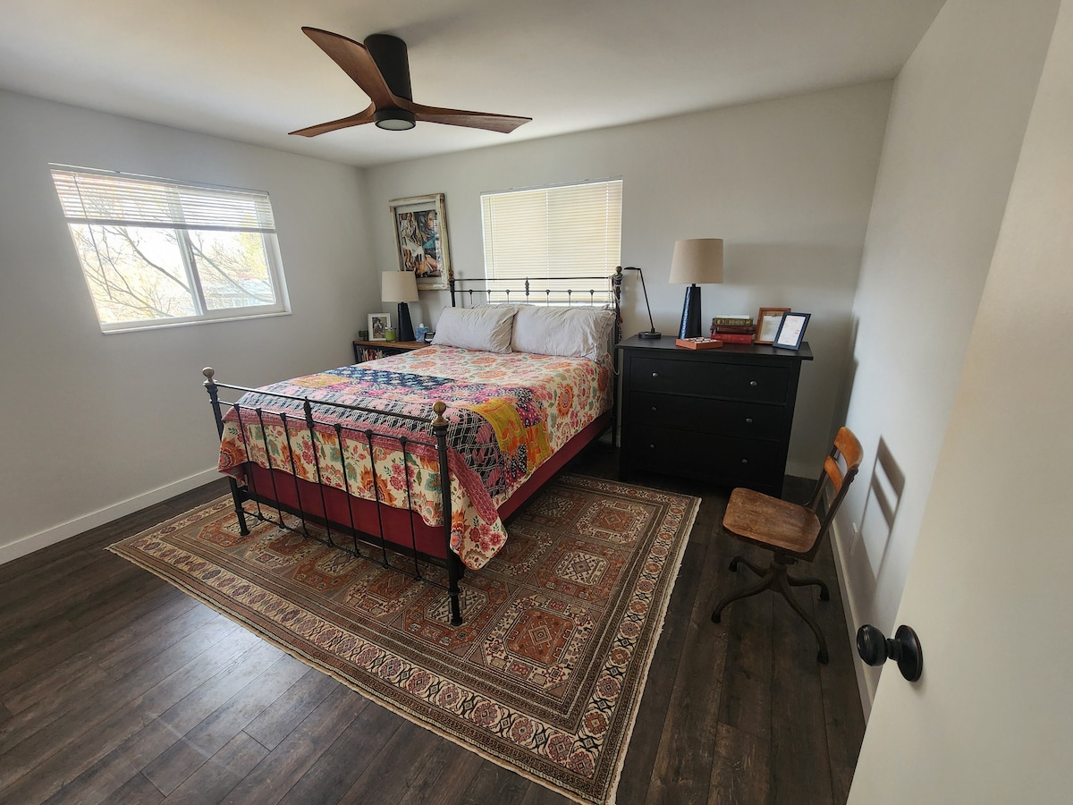600 SqFt Studio Apt. Large Bedroom, full kitchen w/Oven, Automatic Espresso Maker, Upscale Fridge, Washer and Dryer. Private Entry through New Kitchen, Queen Size Bed, Desk, Twin XL Murphy Bed, 55" TV with High speed WIFI. Huge Upscale Priv Bath w/Jetted tub, separate shower and two sinks. 20 - 45 minutes to 8 ski resorts. 15 minutes to Airport, 6 minutes to Downtown. 1 Parking Space in Driveway. This is no longer a shared space as reviews suggest. Deep discounts for 2 week or longer stays.