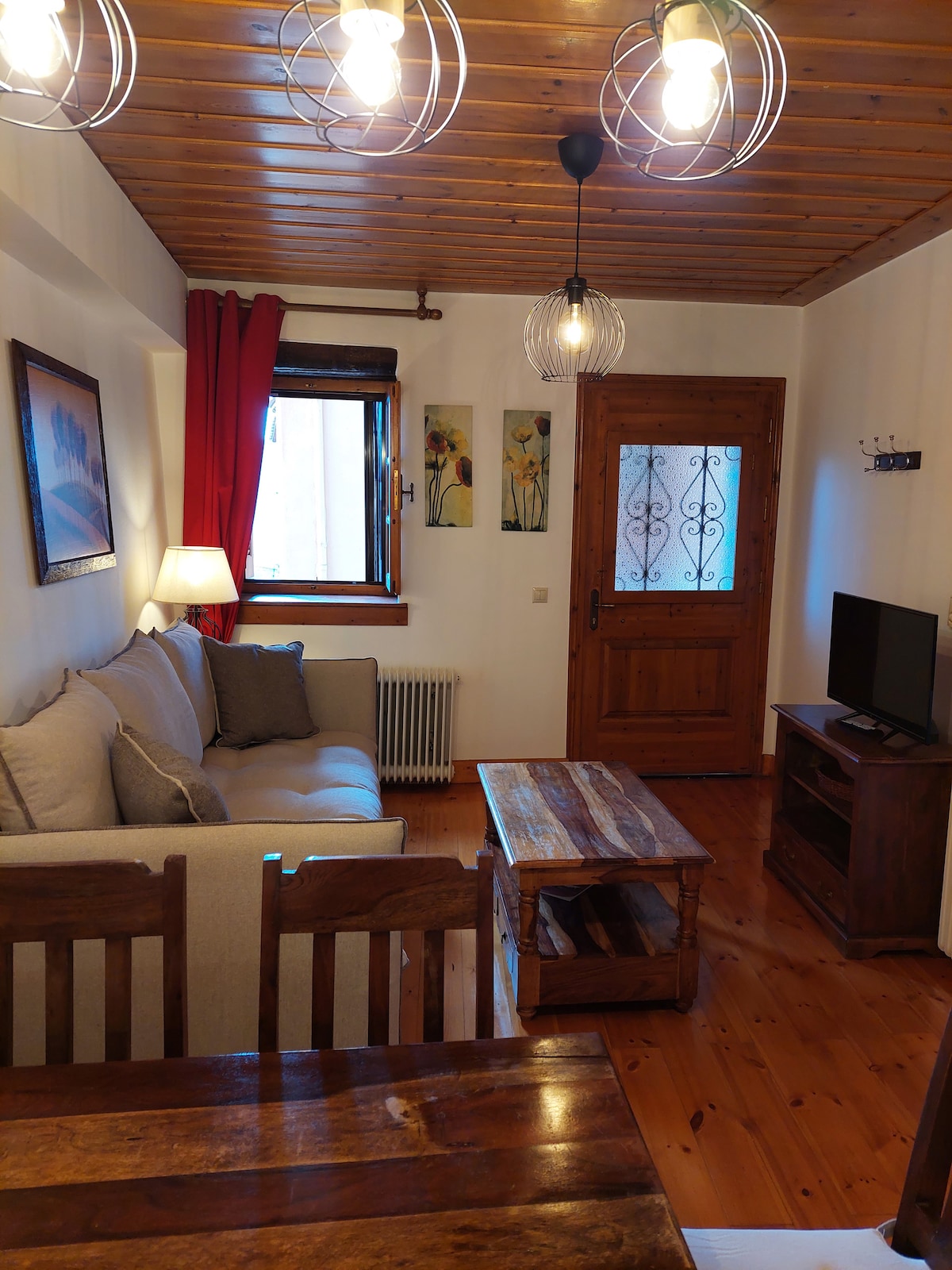 Traditioneel houten en stenen appartement met een prachtig uitzicht over het dorp en de bergen van de omgeving. Het appartement is op loopafstand (300m) van de hoofdweg. Het is geschikt voor 6 personen, met een tweepersoonsbed in de slaapkamer, twee banken die kunnen worden omgebouwd tot bedden in de woonkamer, en een stapelbed in de hal. De keuken is van alle benodigdheden voorzien van een koffiefilter en een broodrooster. Bovendien is er een aparte badkamer en toilet.