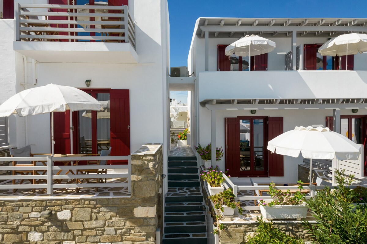 Σε ένα από τα ωραιότερα σημεία της Πάρου,στη μαγευτική Νάουσα βρίσκονται τα πλήρως ανακαινισμένα δωμάτια μας, με γνώμονα την σύγχρονη κυκλαδίτικη αρχιτεκτονική.Σε μόλις 3 λεπτά απόσταση από το κέντρο,σε οικογενειακό και ήσυχο περιβάλλον σας προσφέρουμε τις διακοπές που επιθυμείτε.