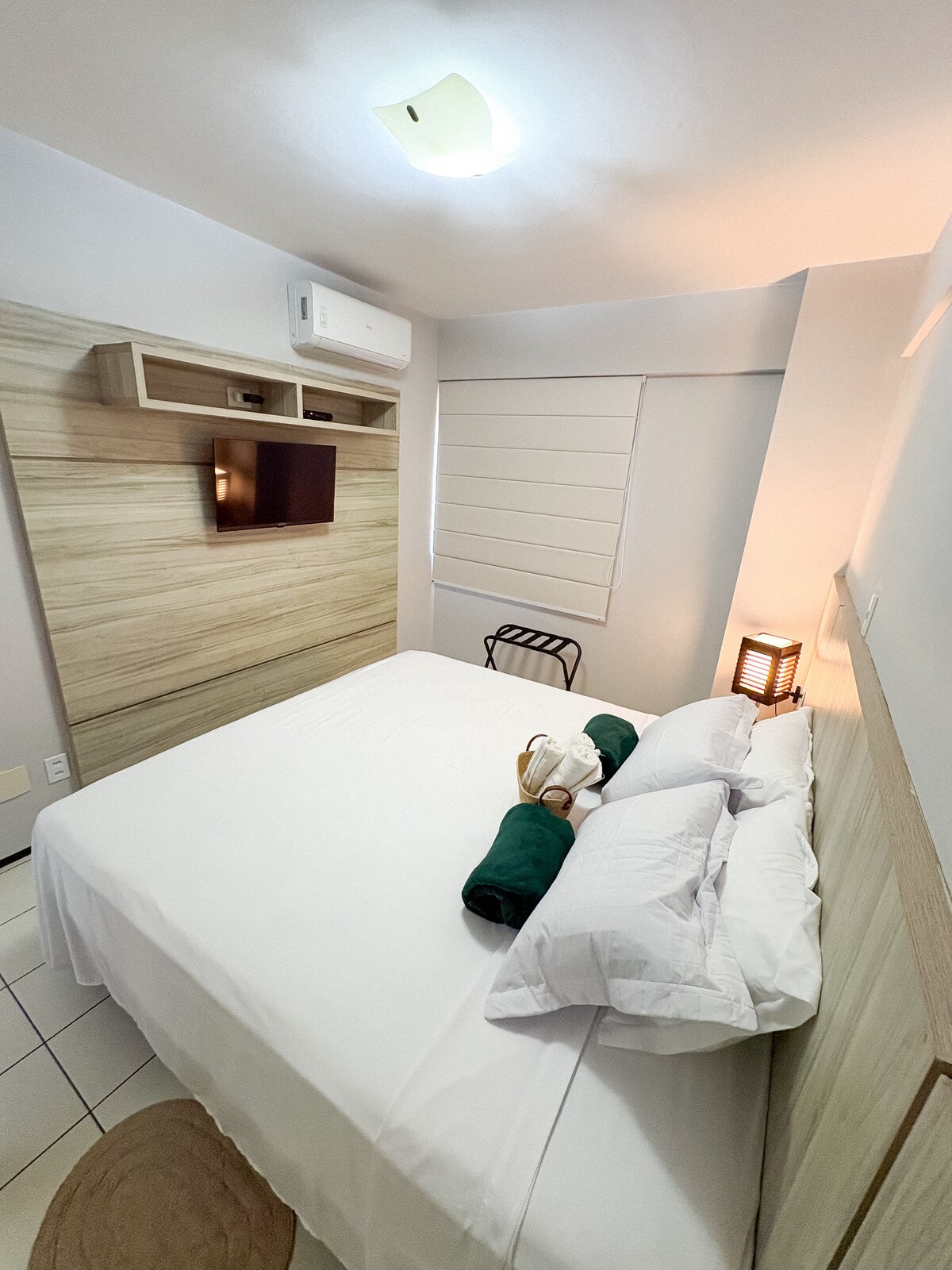 Geniet van je verblijf op het eiland van de liefde in deze rustige en goed gelegen plek, bij de ingang van de kustlaan waar het beroemde strand van São Marcos, de ansichtkaart van São Luís, zich bevindt. Appartement met 1 slaapkamer (kingsize bed), badkamer, woonkamer, keuken uitgerust voor het bereiden van maaltijden/snelle snacks en balkon om te genieten van het uitzicht op de stad. Beddengoed en handdoeken zijn al inbegrepen. Het gebouw heeft een 24-uurs conciërge, receptie, minimarkt, liften, roterende parkeergelegenheid, wasserette, wifi.