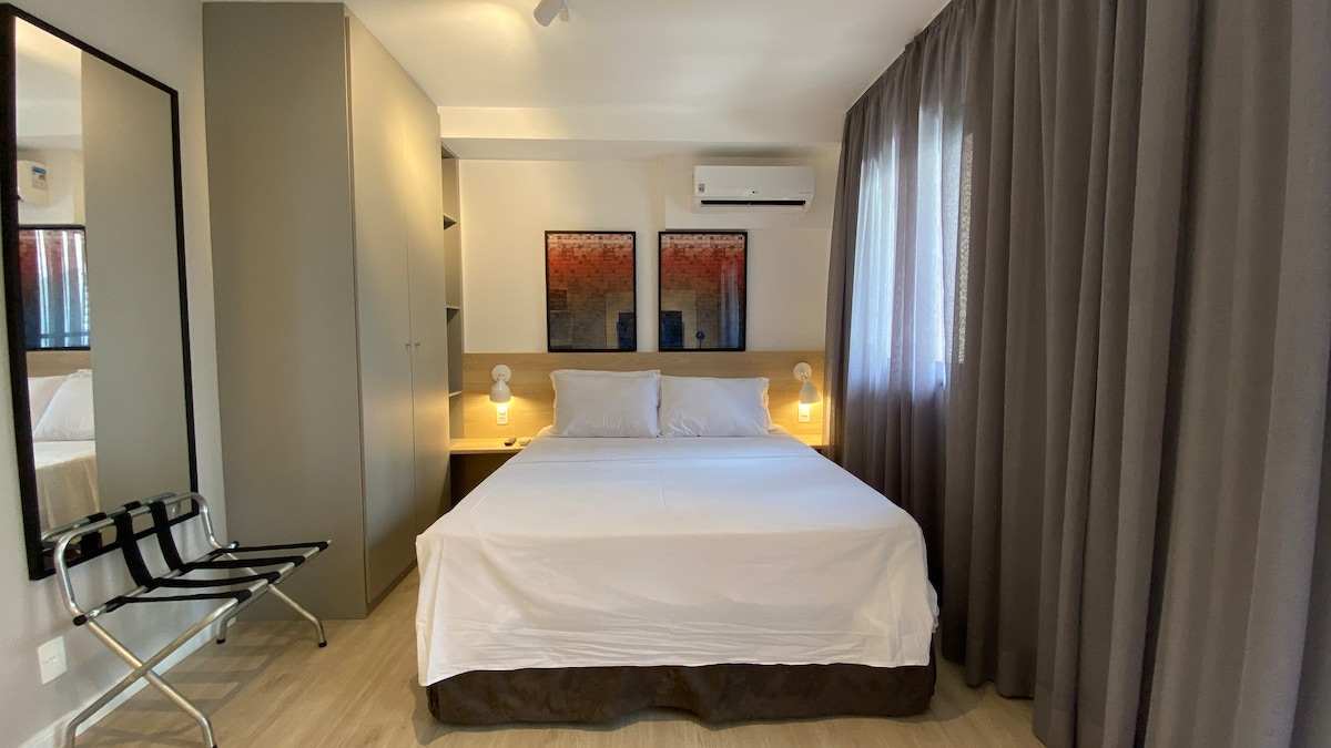 Gezellige studio met 2 tweepersoonsbedden met balkon Keuken voorzien van Air Fryer, blender, sandwich maker, elektrisch fornuis, koffiezetapparaat, bestek, potten, glazen, borden bed- en badlinnen. * smart-tv * wifi * Elektronisch slot * Haardroger * strijkijzer van de pas * Ventilador * Collectieve wasserij met wasmachine * 5 minuten lopen van Rua 25 de Março. * Pajé Gallery * Gemeentemarkt * Brás * Centro Histórico * Kathedraal van de kathedraal