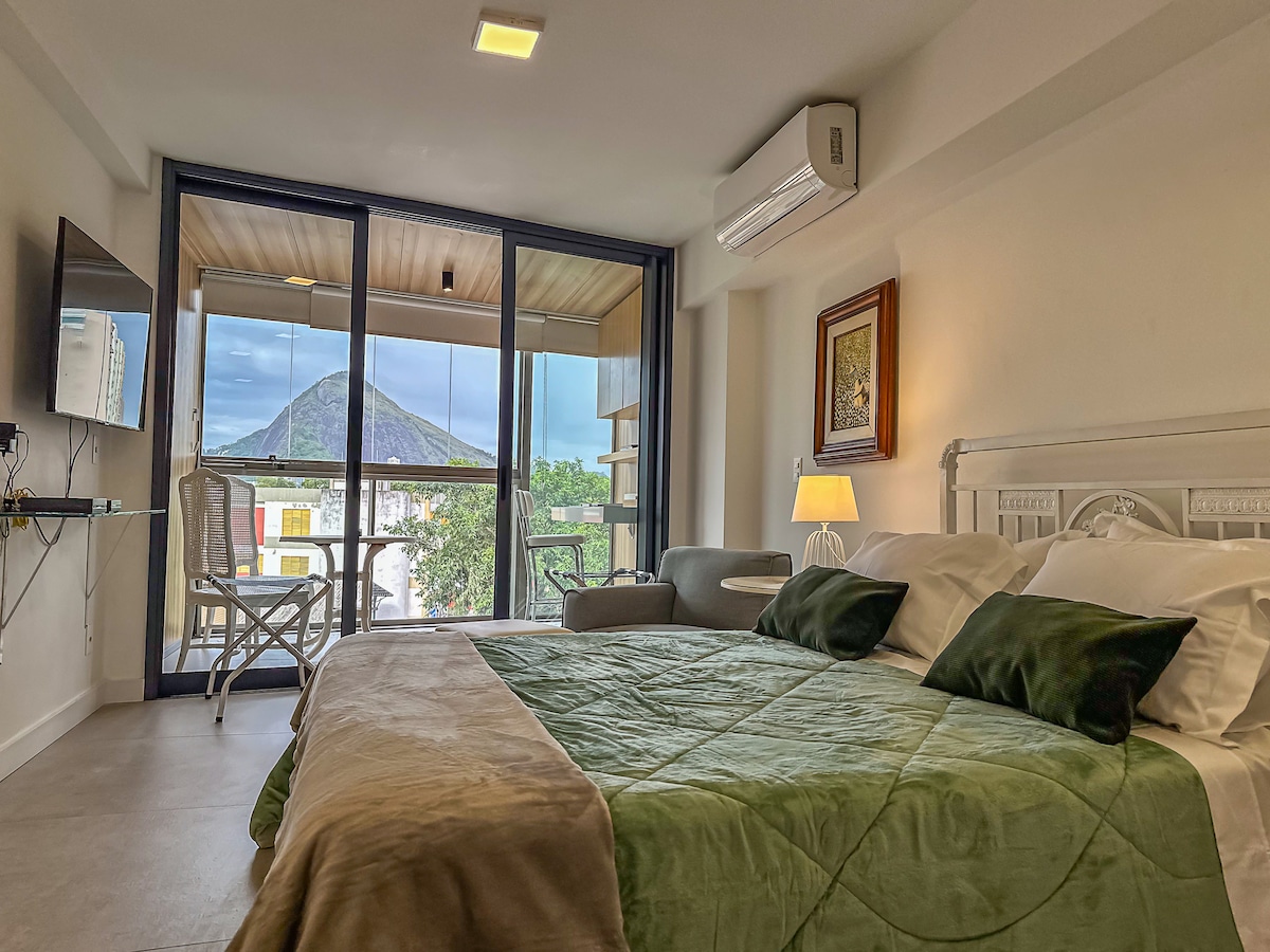 De 45m2 Loft, bestaande uit een kamer en een slaapkamer, is door mij ontworpen om gasten maximaal comfort en welzijn te bieden tijdens hun verblijf. Gelegen op de hoge verdieping met uitzicht op de heuvel twee broers en ook zijaanzicht op ipanema strand van de badkamer. Snelle WiFi. TV met slimme functie, airconditioning in beide kamers, wasmachine en uitgeruste keuken. In de slaapkamer hebben we een queensize bed en in de woonkamer een slaapbank voor twee personen.