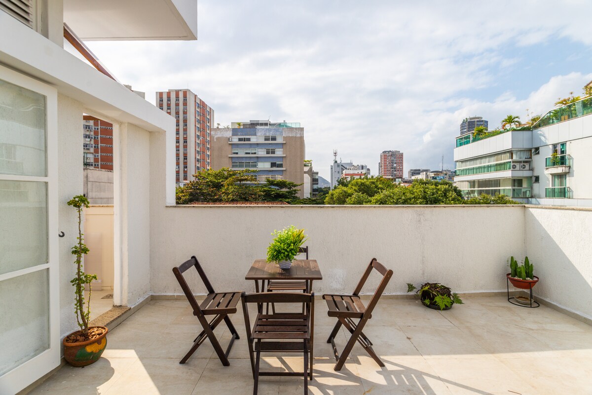 Leblon Loft is het bovenste dak van een appartement in het hart van Leblon, hoek van Dias Ferreira Street, waar de meest trendy adressen van de buurt zijn. Een eigen en gezellige ruimte, open naar een aangelegd terras met jacuzzi en uitzicht op het standbeeld van Christus de Verlosser, waar je wakker kunt worden met het gezang van de vogels. Drie blokken verwijderd van het strand en het metrostation, dicht bij winkelcentra, supermarkten en sapwinkels, is de Loft een geweldige keuze voor koppels of reizigers. Airconditioning 's nachts