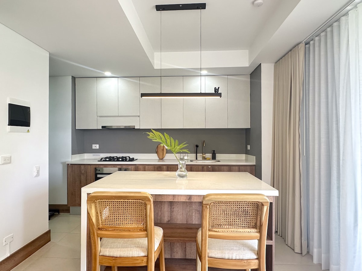 Perú Boutique: Modern Apto in Exclusive North Cali. Is strategically in Santa Mónica neighborhood. This quiet, comfortable, well-equipped, and illuminated space is just minutes away from the vibrant -Zona Rosa- of Granada. It is the ideal place for business trips or tourism, as it features excellent Wi-Fi connectivity. Unbeatable Location: Within walking distance, you will find gyms, a wide variety of restaurants, easy access to public transport, supermarkets, and shopping centers.