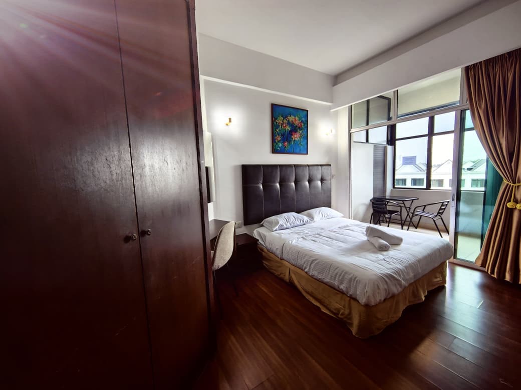 Dit is een ruime unit met 2 slaapkamers die perfect geschikt is voor gasten tot 5 personen met in totaal 1 kingsize bed, 1 queensize bed, 1 eenpersoonsbed. Hoge verdieping met een hoog uitzicht. 1. Basketbalveld 1. Fitnessruimte 2. Functiezaal 3. Lounge 4. Bibliotheek 5. Manicure Shop 6. Mini Theatre 7. BBQ Dek 8. Zwembad 9. Sauna 10. Jacuzzi 11. Speelkamer (pooltafel, PS-kamer, darts en nog veel meer) 12. Wasserij 13. Minimarkt - Sky Garden Guest mag niet gerookt worden in de kamer , rook indien nodig op het balkon