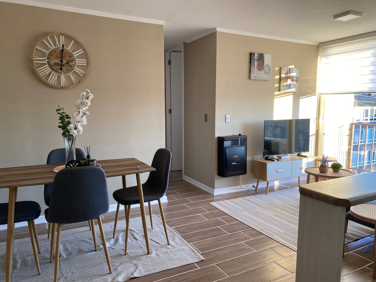 Mooie depto. in Hualpén, provincie Concepción, ideaal voor sightseeing door de geweldige Concepción of voor zakenreizen, 8 min van Casino Marina del Sol, 8 min van de Mall del Trébol, 15 min van Centro Concepción, 15 min van Caleta Lenga. In een exclusief privé condo, veilig en rustig, prachtig uitzicht. Uitgerust voor 2 personen Volledig uitgeruste keuken. Zwembad Wasserij $ Lift Gymnasium(voorafgaande reservering conciërge) Parkeerlocatie voor de deur, BioTren in de buurt.