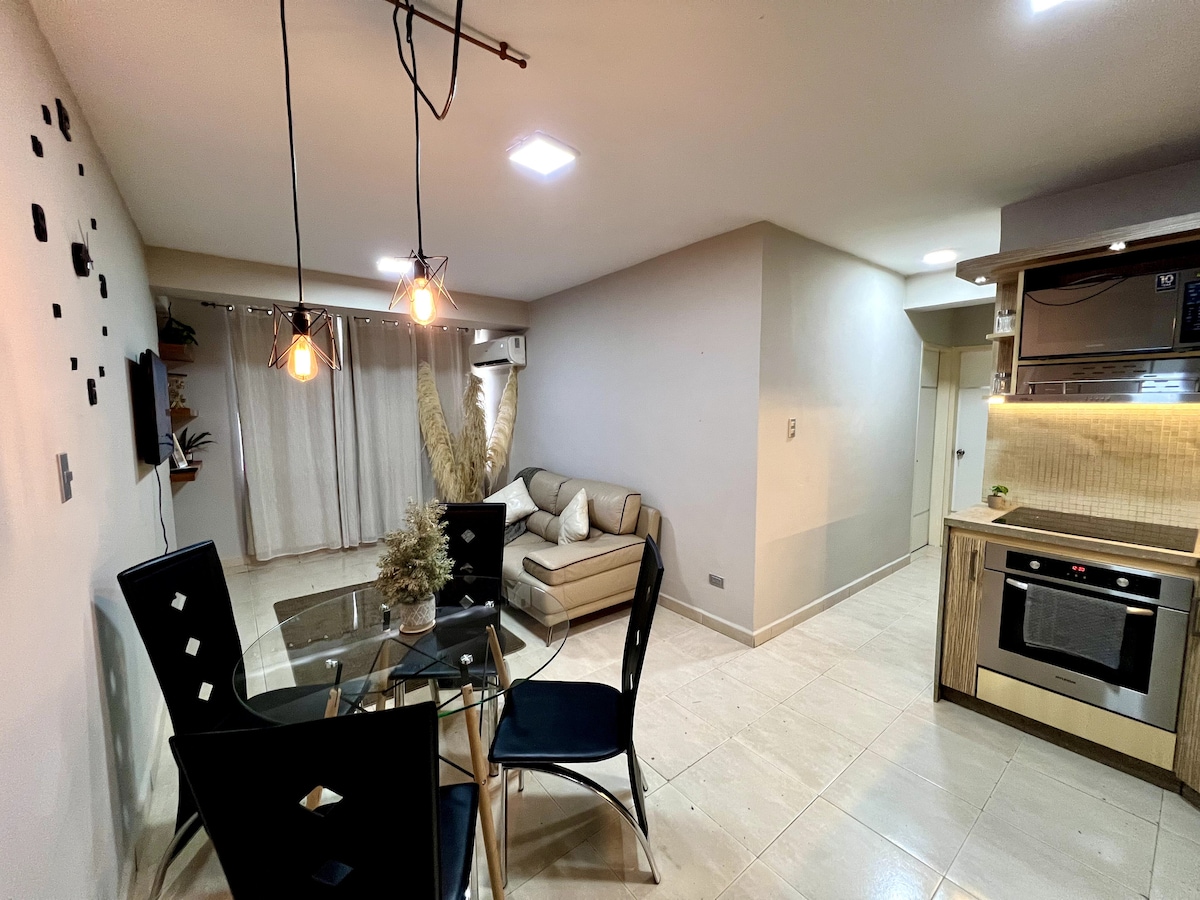 Geniet van een luxe ervaring in deze centraal gelegen woning. het appartement is uitgerust met handdoeken, strijkijzer, basiskeukengerei, wifi, waterkoker, handdoeken en met zwembad centraal gelegen vlakbij Hesperia WTC hotel en winkelcentra. dicht bij bakkerijen, supermarkt, apotheken en fastfoodkraampjes