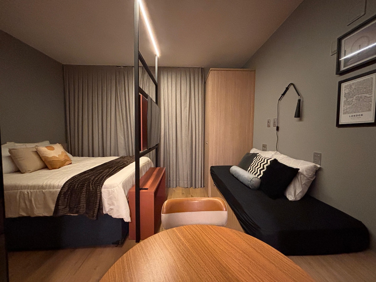 Ontdek verfijning in deze moderne, zonovergoten studio in het hart van Batel, de meest luxe buurt van Curitiba. Perfect ontworpen voor maximaal 4 gasten, het beschikt over een tweepersoonsbed en een slaapbank. Geniet van exclusieve toegang tot een zwembad, sauna en fitnessruimte. Je bent op slechts een steenworp afstand van Shopping PƔtio Batel, toprestaurants en bars. Een perfecte mix van comfort, stijl en locatie.