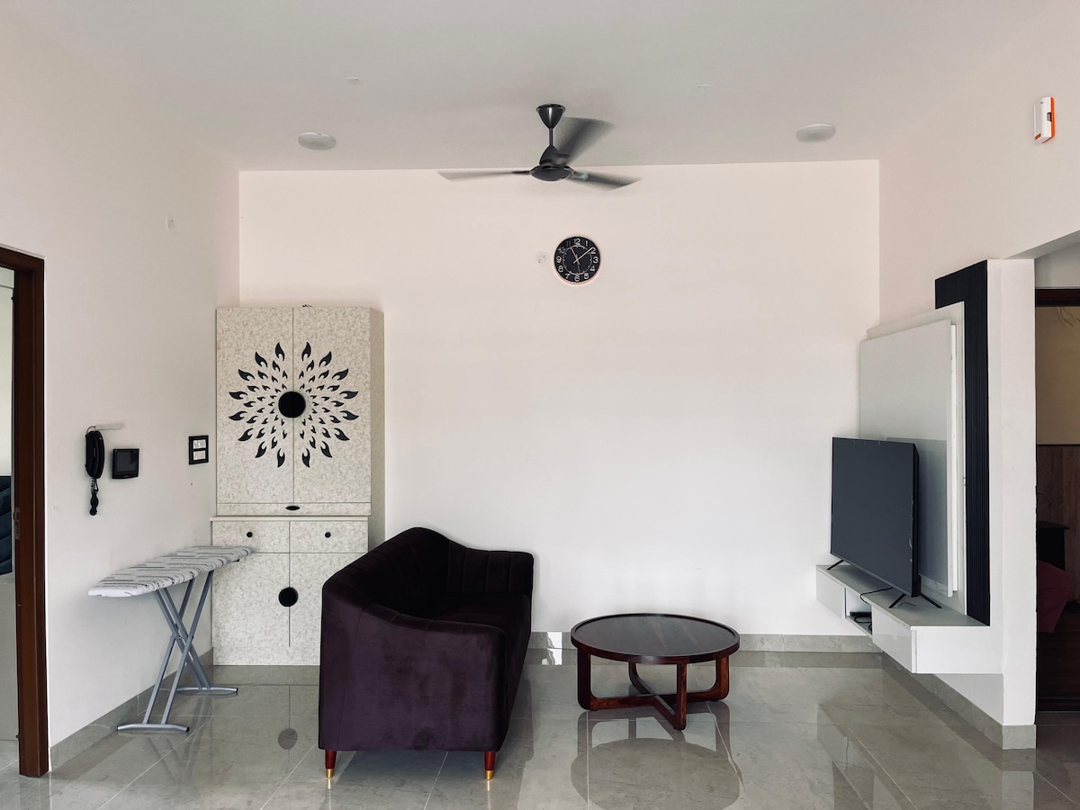 A Modern Olive - Themed apartment with stylish Interiors and comfort. ⚠️ Enter total Guests during booking for the final price. - Couples and Pet Friendly -Perfect for Friends Getaway ⚠️ No Lift and is in 2nd Floor -Fully Air conditioned 2 Bedrooms -Kitchen with all the cooking essentials - Free Wifi -Free Netflix and OTTs - Scooter for rent available Perfect for Long stay and Staycation *Online food delivery to doorstep (Swiggy/Zomato/Zepto ) *Uber/Ola are serviceable