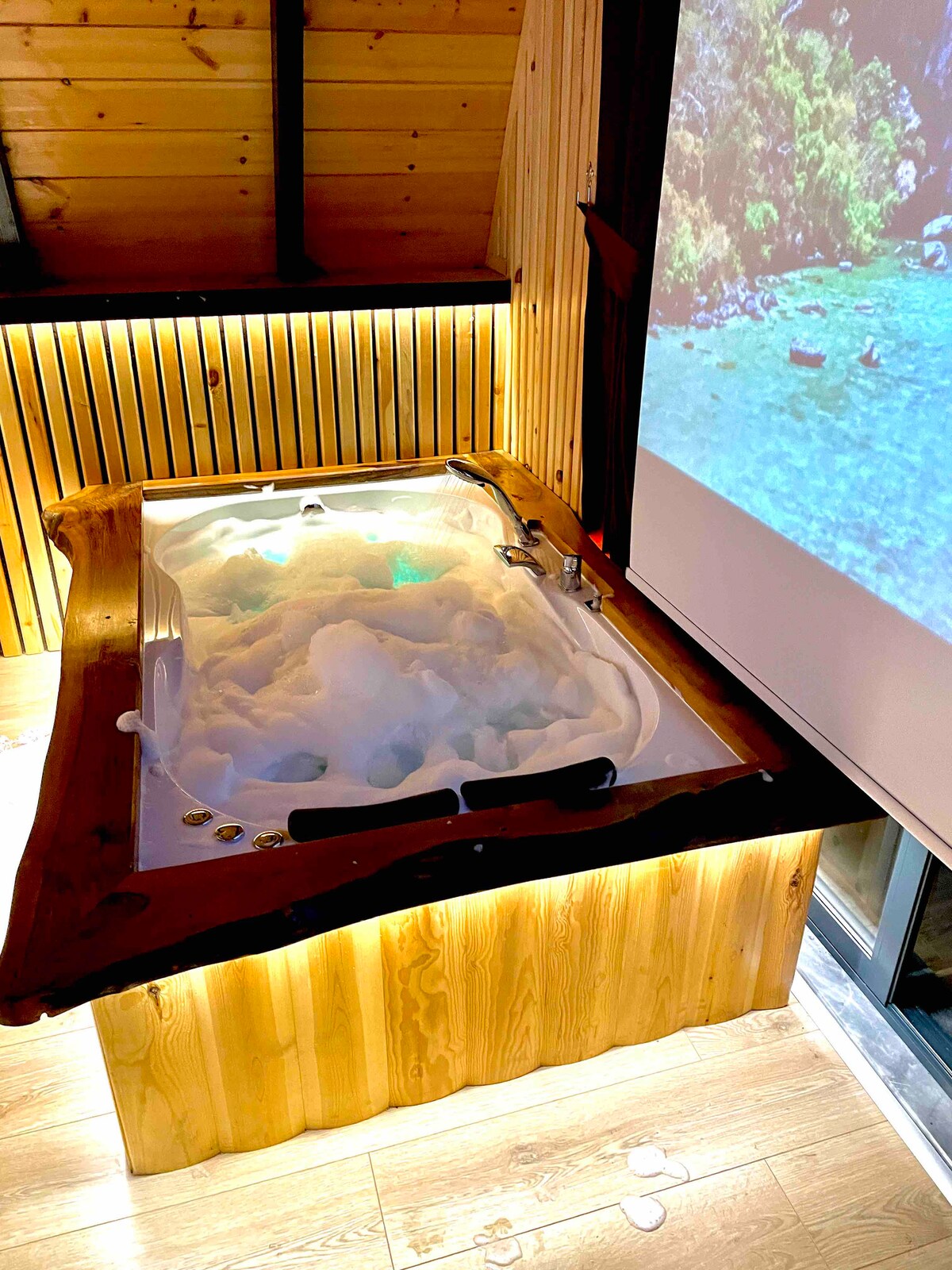 - Onze bungalowwoning is volledig houten en authentiek ontworpen. - Onze bungalowwoning heeft een openhaard en heeft een prachtig uitzicht op de vallei en de bergen. - Onze kamer heeft een breedte van 45 m2. - Het is een concept dat bruidsparen gemakkelijk kunnen kiezen. - De benedenverdieping is in de vorm van een woonkamer; er is een tweepersoonsbed op de bovenverdieping zoals een balkon, bankstel, badkamer, tv, minibar, enz.