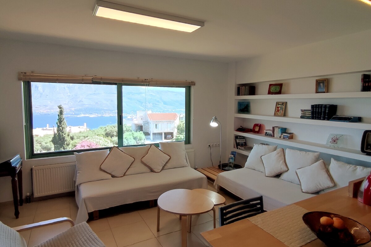 Volledig gerenoveerde badkamer (januari 2026) Eenvoudige decoratie, comfortabele ruimtes, groot balkon, adembenemend uitzicht, in de rustige omgeving van het historische Halepa aan de weg die de luchthaven en de stad Chania verbindt. Op slechts 3 km van het oude centrum van Chania op 9 km van de luchthaven. Bushalte buiten de ingang van het appartementencomplex. Grote supermarkt op 50 meter.