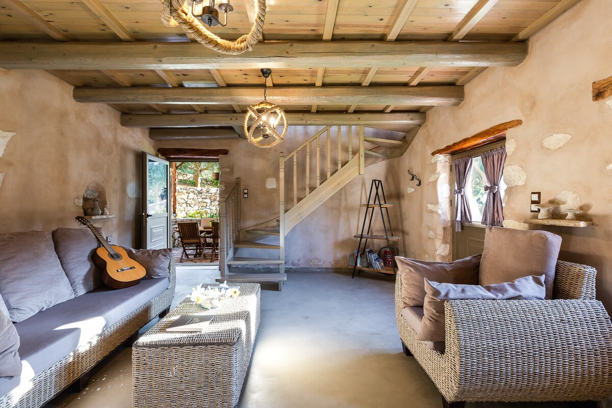Our newly renovated Farm Style Cottage, is an ideal place for relaxation and contact with nature. Has recently be renovated now offering two separate bedrooms one with a double bed and the other with two single beds. A sofa bed can be an extra option for a fifth person to stay. Is built in remains of an old settlement (Bethonia) dating from around 1300 AD, hidden in a spectacular valley.We offer our organic garden products in a traditional way of life. Pure relaxation and healthy way of live!
