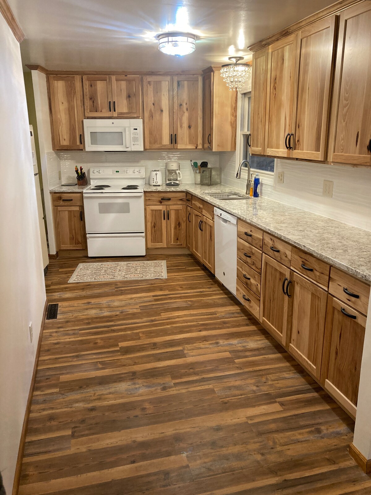 Welcome to The Hinterland Hideaway Cottage! — Lakefront property right on lake with dock — Steps away from public boat landing — 10 minutes away from Nordic Mountain — 2 kayaks and paddle boat available — Fire pit with outdoor seating — Gas grill and pizza oven — Dining room nook — Coffee bar — Wifi — Luxurious amenities — Backyard deck over looking lake — Central Heat and AC — NO PETS — NO SMOKING