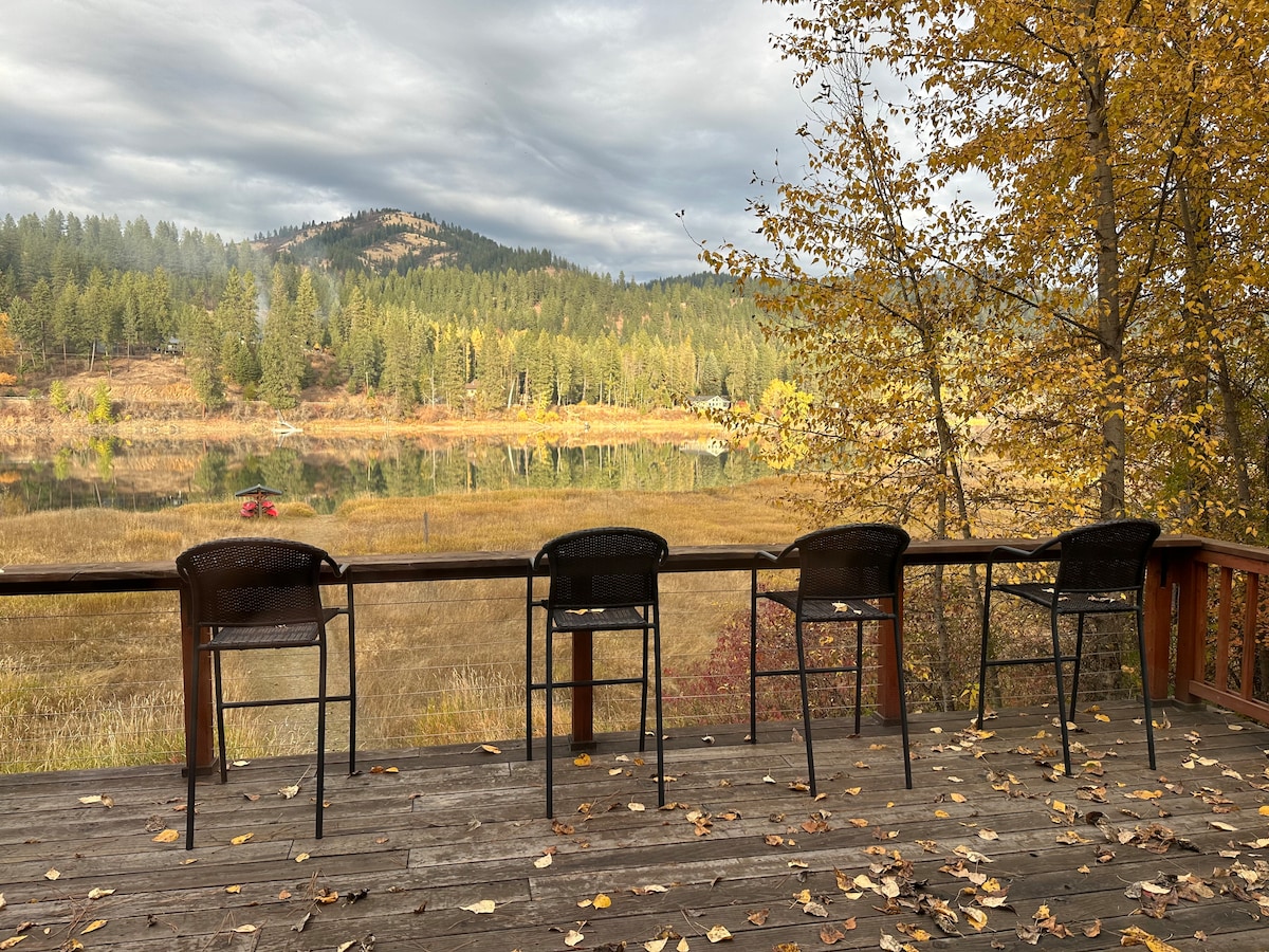 Dit huis aan het meer ligt direct aan het water en heeft vanuit bijna elke kamer een panoramisch uitzicht op het meer met prachtig uitzicht vanuit de keuken. Je hebt het beste uitzicht op de zonsondergang aan het water. We hebben razendsnelle glasvezelwifi. Dit huis aan het meer is een geweldig uitje aan het water, op slechts 40 minuten van Spokane. Gelegen op slechts enkele minuten van 49 North Ski Hill en 35 van Mt Spokane en 50 minuten naar Schweitzer. JE MOET DE ZONSONDERGANGEN KOMEN BEKIJKEN! GEEN FEESTJES TOEGESTAAN, RESPECTEER DE BUREN.