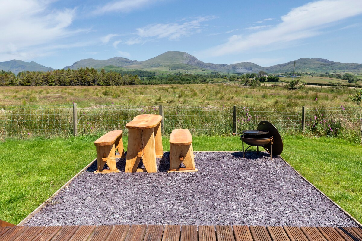 Ontsnap naar de zee en de bergen! Ontdek prachtige stranden voor een duik en wandeling door het hart van het Snowdonia-gebergte op dezelfde dag! Verblijf op een Welsh werkende boerderij omringd door een prachtig panoramisch uitzicht. Luxe Glamping Pod met eigen bubbelbad. Wij bieden een heerlijk unieke ervaring die je in staat stelt om te genieten van de luxe van onze accommodatie terwijl je in het boerenleven gluurt. En-suite, het hele jaar door vloerverwarming. Barbecue/vuurplaats, wifi. Versierd met welsh producten.