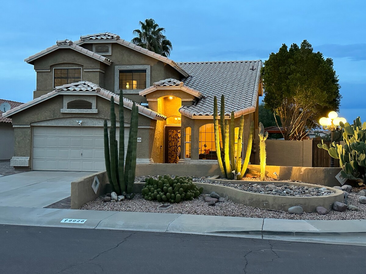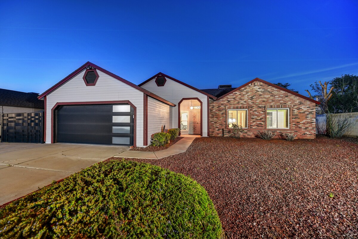 Welkom bij Cactus Corner! Waar je kunt genieten van het beste wat de woestijn te bieden heeft in dit prachtige huis. De patio aan de achterkant biedt veel privacy. Of je nu aan het zwembad geniet van een koel drankje of dikke steaks op de premium buitengrill barbecueert, dit is de ontsnapping waar je naar op zoek bent! Nog geen 20 minuten van State Farm Stadium en het Glendale Entertainment district. De grote slaapkamer heeft een kingsize bed en een dromerig matras voor een goede nachtrust. 5 minuten naar New River Trail.