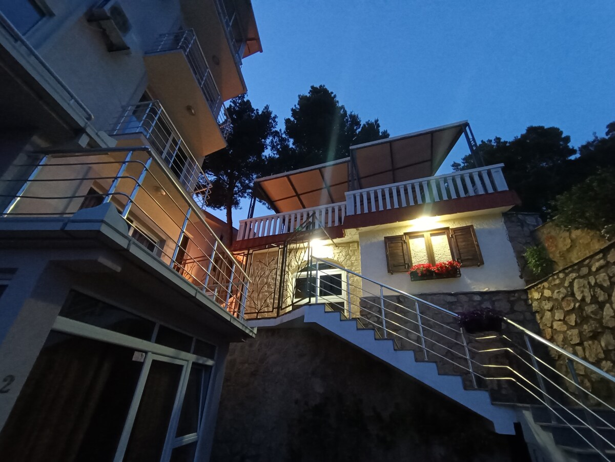 A quiet place away from the noise of the city with the view of the mountains and Bar harbour. The house is placed on the hill about 100 meters above sea level. In hot summer period it might be not easy to access the house without a car. Please calculate your strength.