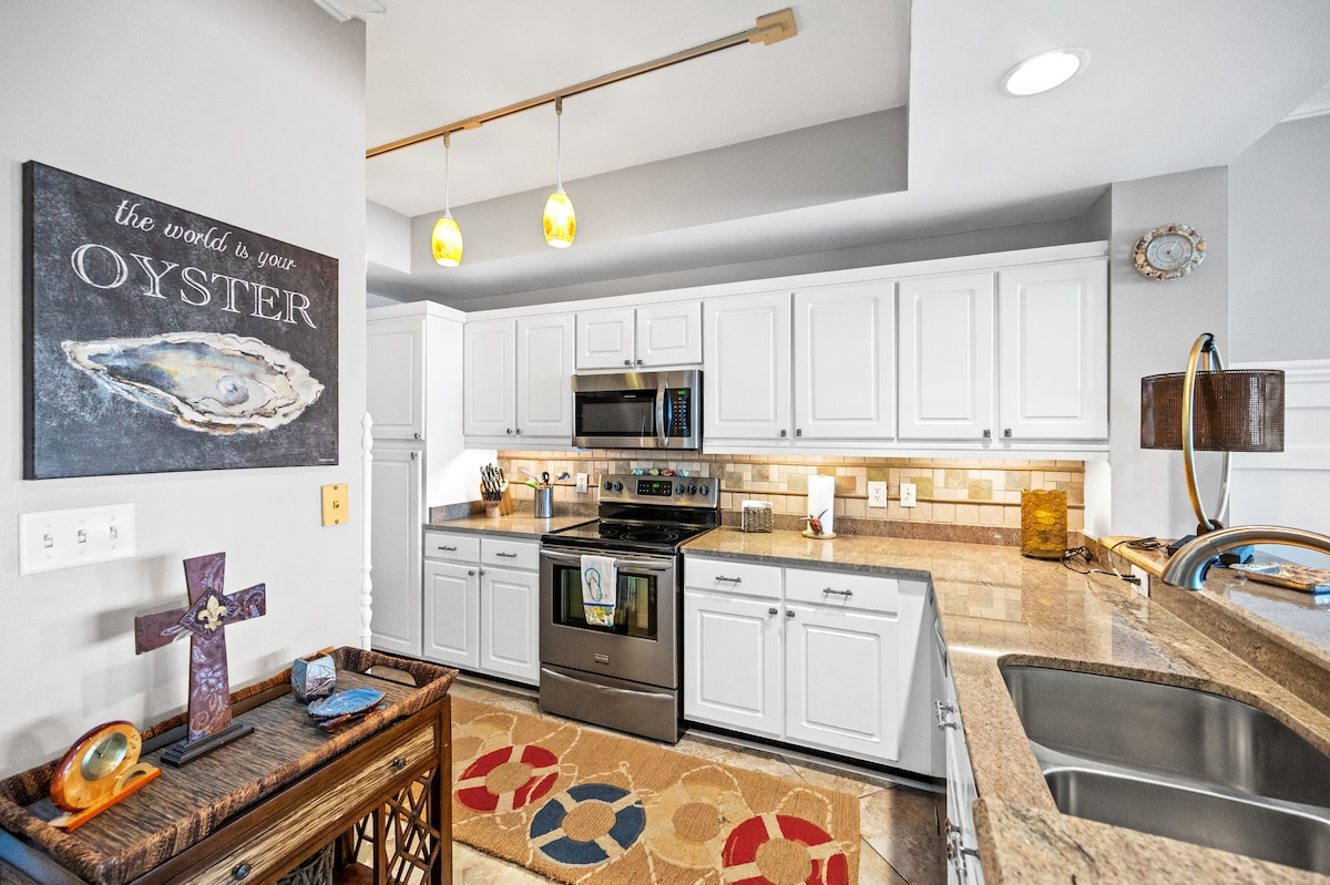 Ontspan en geniet van een tropisch eilandparadijs! Luxe in het Purple Parrot Resort op Perdido Key. Kick it in de trendy Tiki Bar & Bistro, beleef het witte zand, surfen, zon en zonsondergangen op het openbare strand op slechts enkele minuten afstand. Geniet van de 5.000 vierkante voet binnen-/buitenzwembaden en bubbelbaden en fitnessruimte. Ervaar de iconische Blue Angels op enkele minuten afstand in Pensacola. Jouw gids: https://abnb.me/0ZYbnu1XVFb Parkeren is voor twee auto's. Als er parkeergelegenheid nodig is, hebben we een deal met een lokaal opslagbedrijf.