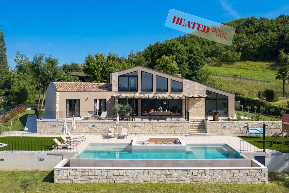 Stijlvolle villa in de buurt van Rovinj met een prachtig zwembad, een verzonken bubbelbad en een sauna. Wakker worden met een weelderig, panoramisch uitzicht op de vallei. Koppels en gezinsvriendelijk, op korte rijafstand van avonturenpark, Nationaal Park Brijuni, dinopark, middeleeuwse steden en lokale gerechten. Het is een echte groene ontsnapping voor iedereen die terug wil naar de natuur met alle comfort van het moderne leven. Volledig uitgerust voor koken en entertainment in 2600 m2 tuin (voetbal, speedbal, badminton en zwembadplezier) voor je kinderen en geliefden om van te genieten.