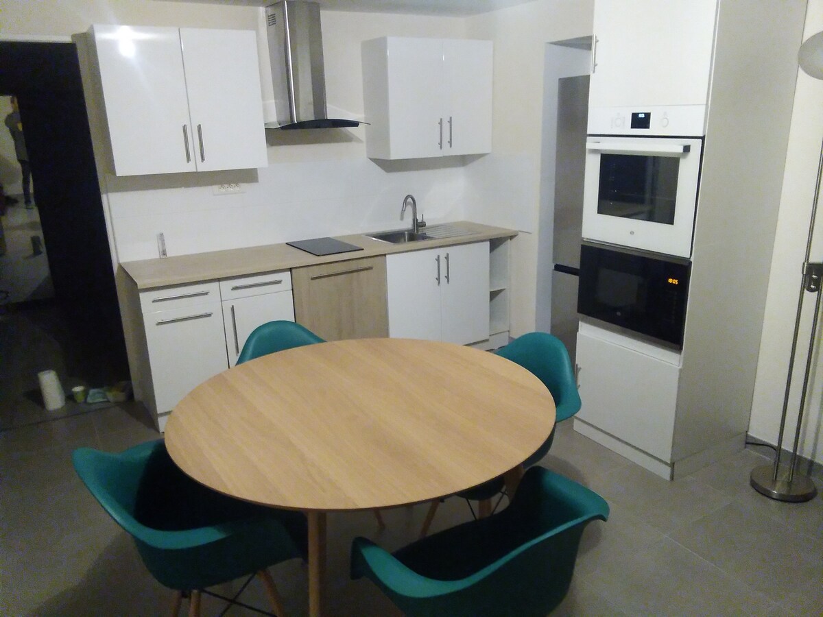 56m² nieuw/gelijkvloers villa/privéterras + gemeubileerde eethoek/2 parasols/grastuin/gratis parkeren/volledig voorzien van airconditioning/wasmachine/droger/bed 180x200/snelle wifi/Netflix HD-tv/Italiaanse luxe lounge/volledig bureau/elektrische zelfconsumptie/6 kWc zonne-installatie op het dak/3 sterren "Gites de France" over uitgerust/zeer rustige woonwijk/4 minuten stadscentrum/lichte veranda/huisdier welkom (behalve olifant)