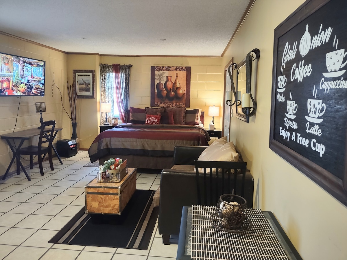 This gorgeous studio apartment is 378 sq ft but it has everything that you need for a comfortable stay. (No stove), Enjoy your private covered patio area with a bistro set and a gorgeous tent with seating surrounded by patio lights and beautiful plants for the perfect vibe. Because of previous experiences we are currently only accepting guests with positive reviews.