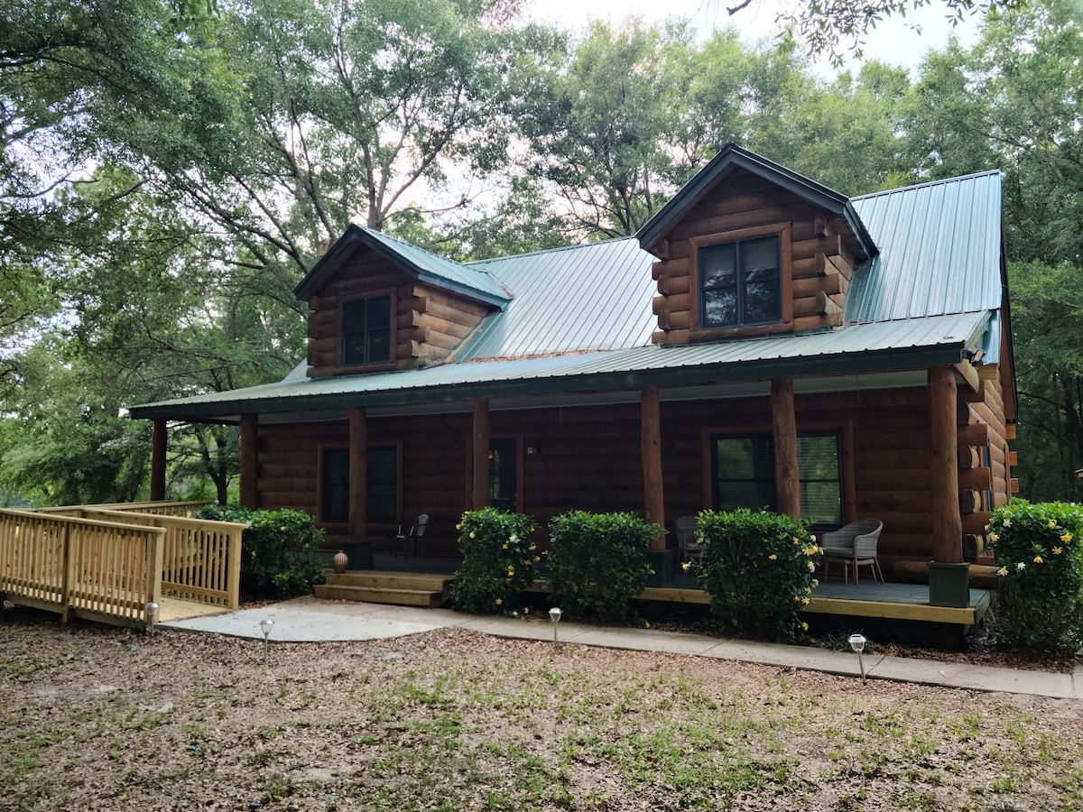 Nestled in the heart of rural North Florida, this picturesque log cabin on 3 acres offers a tranquil retreat enveloped by majestic oaks and towering pines. Stepping inside, they find themselves embraced by the warmth of a cozy interior, where comfortable furnishings invite relaxation. However, the true allure lies where a sprawling outdoor deck beckons guests to unwind amidst the serenity of nature while enjoying their morning deink from the extensive selection of coffee, tea and hot chocolate.