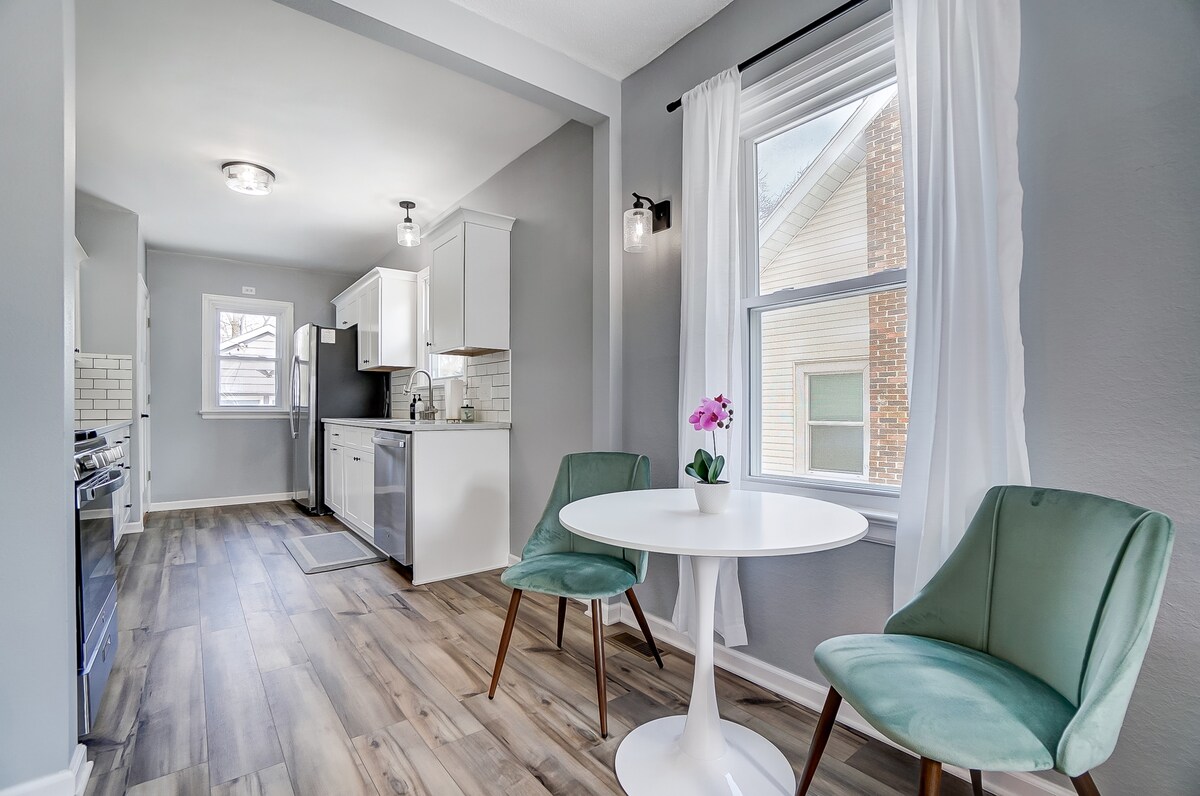 Welkom bij The Little Blue Bungalow — een licht, vrolijk toevluchtsoord op slechts een korte wandeling van het hart van de beloopbare uptown van Perrysburg. Deze met zorg gerenoveerde woning combineert vintage charme met modern comfort, waardoor het perfect is voor weekendjes weg, gezinsverblijven of solo-uitjes. Binnen vind je zonovergoten kamers, gezellige hoekjes en stijlvolle details. Of je nu koffie drinkt in de gezellige serre of gewoon tot rust komt, deze ruimte helpt je te ontspannen, opnieuw contact te maken en je op je gemak te voelen.
