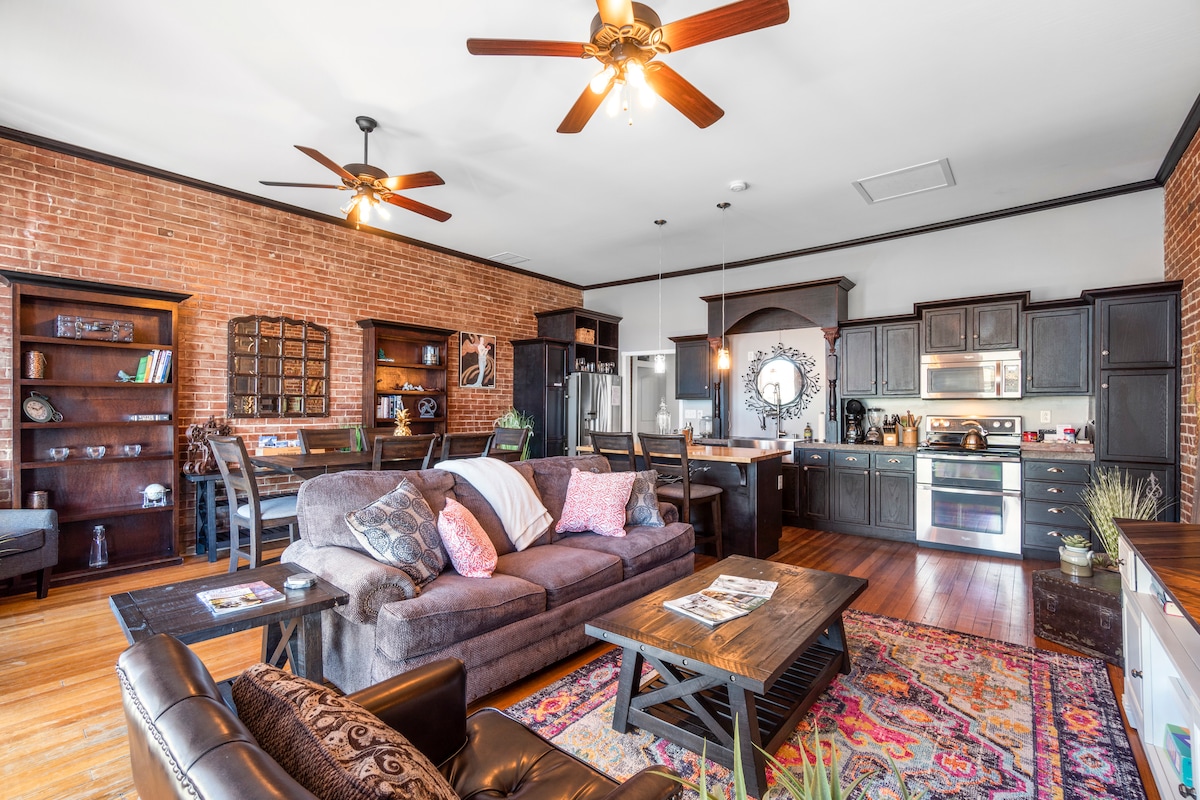 Downtown Perryville, MO * * DISCLAIMER * * Je hoort restaurant praten en muziek als je geen tv/of radio hebt tussen 10.30 en 01.30uur. Als je vroeg naar bed gaat, raad ik een koptelefoon, oordopjes of natuurgeluiden af op Alexa. Dit is een huisdiervriendelijk loft-appartement, dus ik zou het niet aanraden als je allergisch bent voor honden of katten. Dit appartement is gelegen boven een van de populairste bestemmingsrestaurants rond 'Mary Jane Burgers & Brew' aan het Downtown Historic Square.