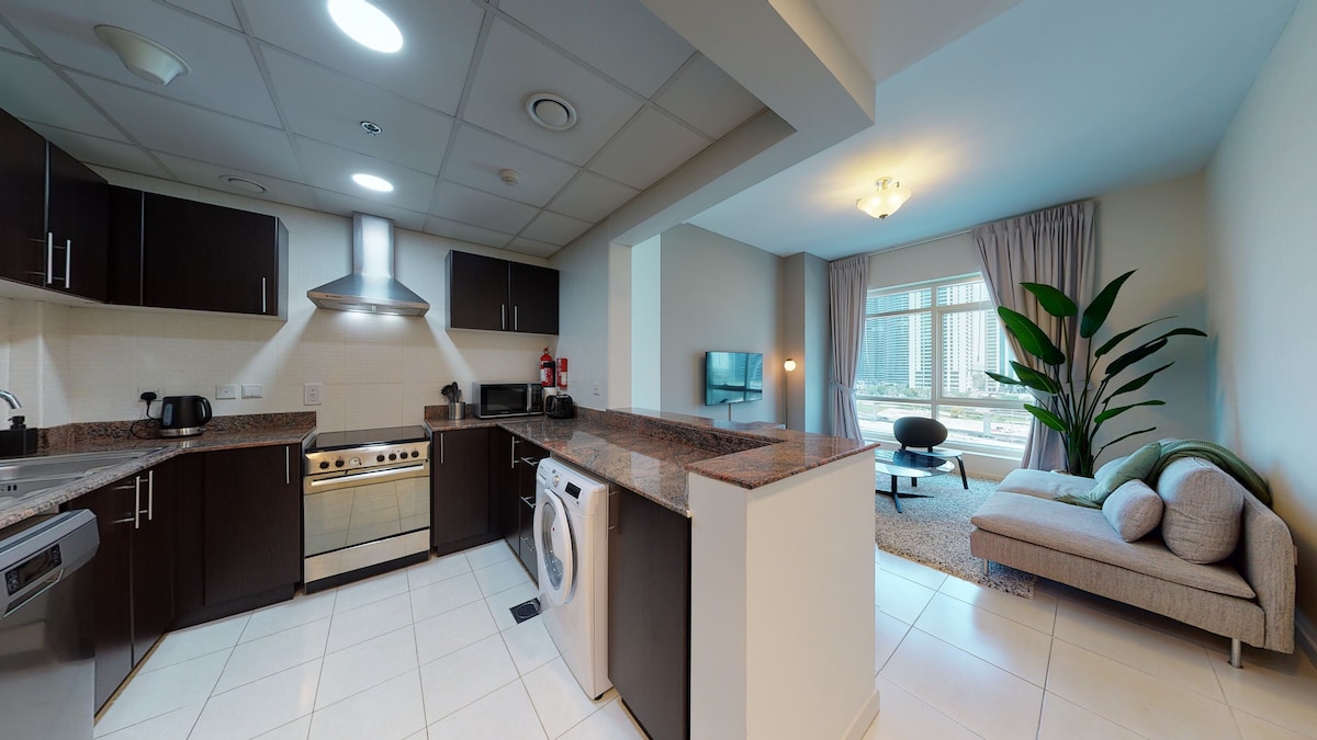 Dit grote studio-appartement met geweldige locatie waar we ervoor zorgen dat je alle comfort krijgt: balkon, wasmachine, volledig uitgeruste keuken met fornuis en waterkoker, tv, gratis snelle (500MBPS) wifi, beddengoed, handdoeken, bestek en servies. Dubai Metro ligt op minder dan 4 minuten lopen. Marina Mall and Marina Walk ligt op slechts drie minuten afstand. Zeer schoon en rustig gebouw. , Apotheek en bekende kliniek beneden in het gebouw. Carrefour express 24/7 geopend.