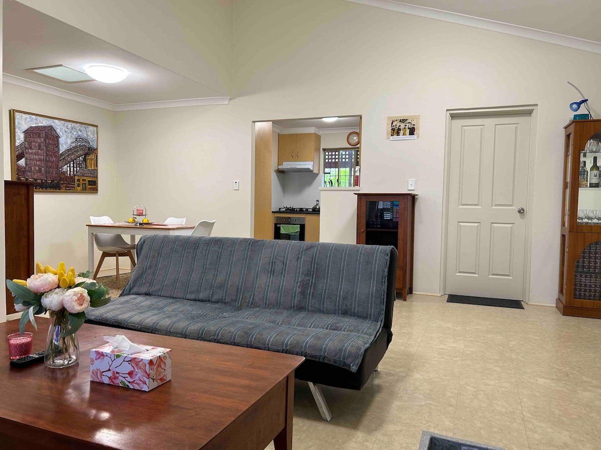 Als ervaren Superhosts sinds 2019 zijn we blij je te mogen verwelkomen in onze nieuw gebouwde omaflat in de buurt van Perth Airport. Deze comfortabele privéslaapkamer met beddengoed van hotelkwaliteit is perfect voor je overnachting voor je volgende vlucht. Gedeelde keuken- en douchefaciliteiten met een andere gast. Op slechts 10 minuten rijden van zowel binnenlandse als internationale luchthavens. Simplistisch comfort, superieure netheid en een goede nachtrust zijn de belangrijkste prioriteiten die we aan al onze gasten willen bieden.