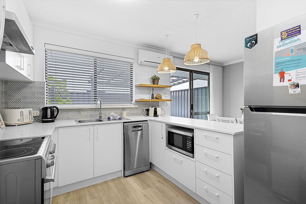 Verken Perth vanuit onze rustige en handige privéeenheid. Ingericht om de West-Australische levensstijl aan de kust te emuleren, geniet je van het ruime, lichte, luchtige, rustige gemak. Geniet van het spectaculaire uitzicht op slechts 10 minuten lopen naar de rivier. De dolfijnen, Osprey, Black Swans en een scala aan vogels houden je gezelschap. Een nog kortere wandeling verbindt je met Perth met de trein, op slechts 12 minuten naar de stad. Fremantle ligt op 15 minuten rijden en de bushalte ligt op 2 minuten van je deur.