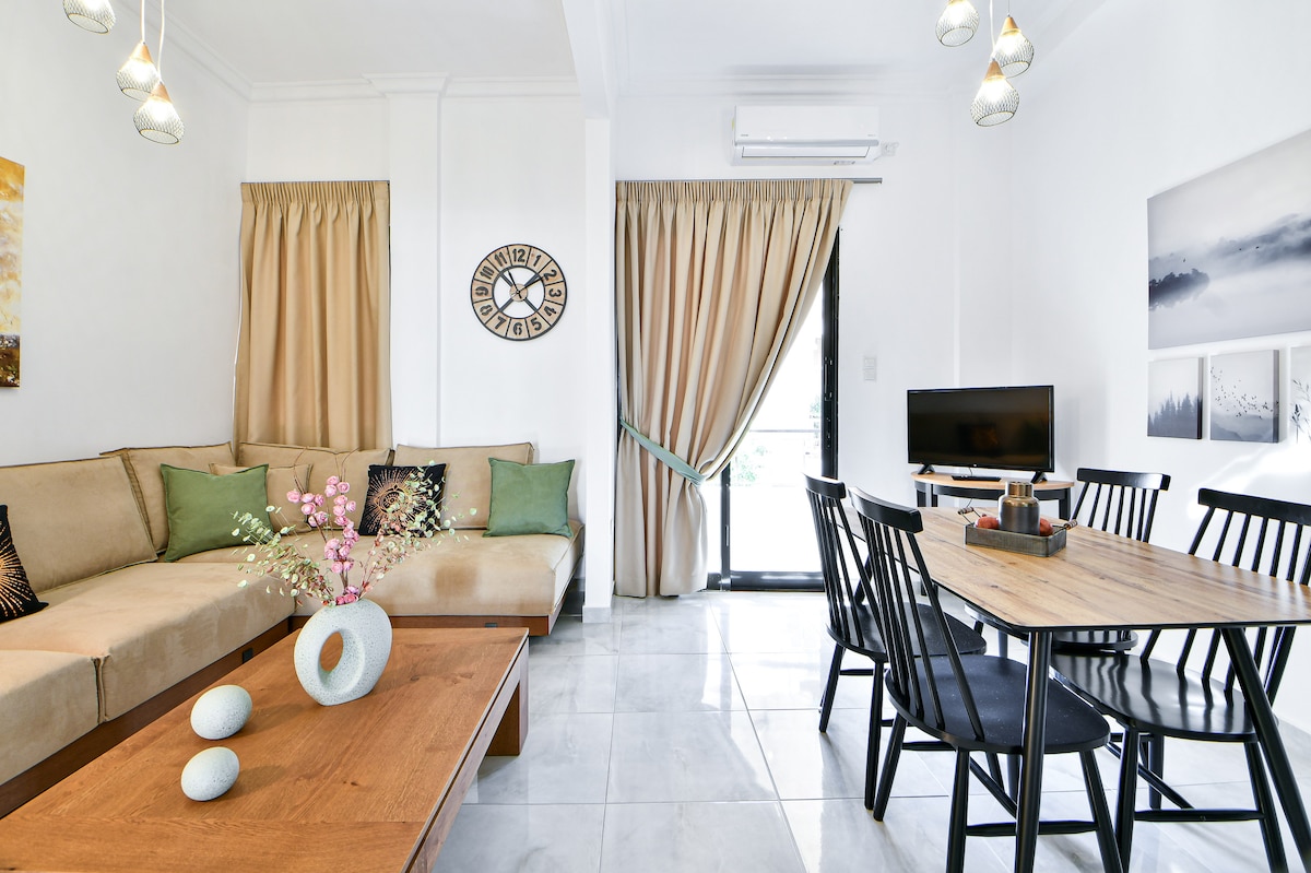 Een stijlvol appartement in Athene, eigendom van en ontworpen door Neta Dror, een ontwerper en kunstenaar die de ruimte heeft doordrenkt met haar persoonlijke visie. Dit appartement heeft een unieke ruimte die oude en nieuwe elementen combineert. Het appartement heeft een grote woonkamer met een comfortabele bank, een eettafel en een keuken met alle voorzieningen. De slaapkamer heeft een comfortabel tweepersoonsbed en de badkamer verrast en lekkernijen. Dit appartement is meer dan alleen een plek om te slapen, het is een plek om te ervaren.