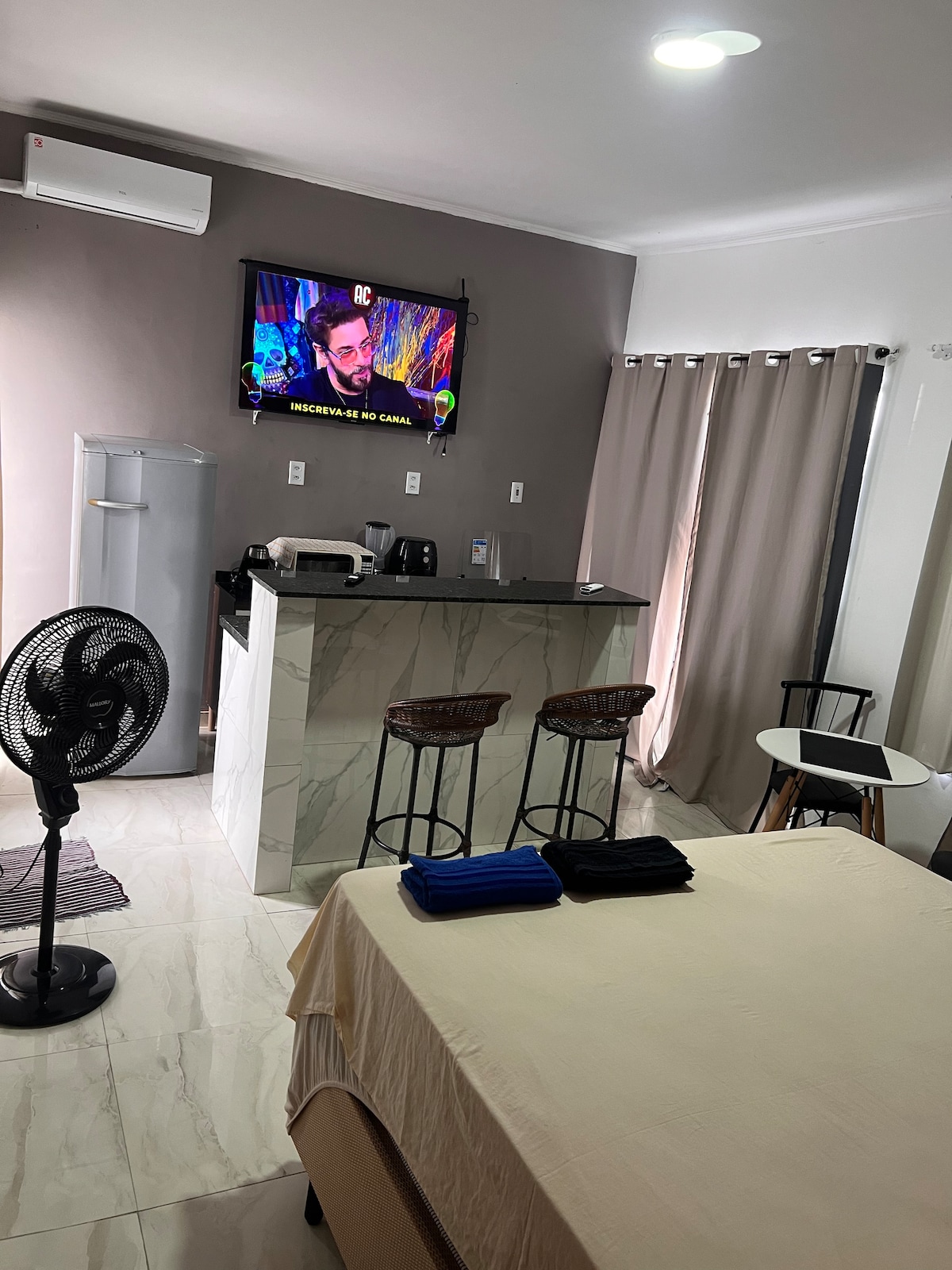 Recém construído no centro da cidade, o nosso flat possui localização estratégica e fácil acesso (5-10 min a pé) a diversos pontos da região, como shopping, restaurante, academia, faculdade, igreja, clínica, hospital, padaria e posto de combustível. O flat é completo e conta com 3 ambientes: sala/cozinha conjugadas com área de serviço; quarto; e banheiro. Perfeito para quem busca praticidade, conforto, e um lugar muito bem equipado.