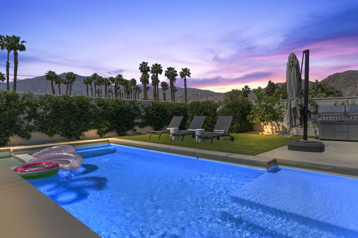 *Zeldzame vondst* Kom voor de muziek. Verblijf voor de prachtige wandelpaden en op 40 mijl rijden van Joshua Tree Park. Ultieme combinatie van een zen-woestijnretraite. OPMERKING: Coachella/ Stagecoach-weekenden worden ALLEEN goedgekeurd na het overschrijden van de stadsregels/-voorschriften om ervoor te zorgen dat het goed past. Moderne kamerhoge ramen. Het is de ontsnapping uit de woestijn met het onbelemmerde uitzicht op de bergen. Je kunt de weerspiegeling van de zon zien ondergaan in het zwembad en de basque in het uitzicht van de miljoen dollar op de bergen van Coachella Valley.