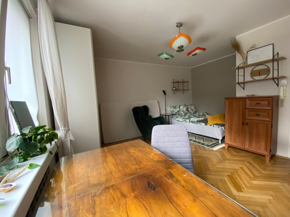 Hoi, Cześć, welkom! Saska Kępa Studio appartement is een gezellige en volledig uitgeruste ruimte in het hart van de populaire wijk Saska Kępa - aan de overkant van de rivier van het stadscentrum! Het appartement is gelijkvloers van een wooncomplex (beveiliging, minitoring) naast Rondo Waszyngtona. Het appartement bestaat uit een gang, een woonruimte met een bank, een eettafel en een keuken, een slaapbijgebouw en een badkamer met een douche. Naast de rivier de Vistula en het Nationaal Stadion van PGE. Kom Warschau bezoeken!