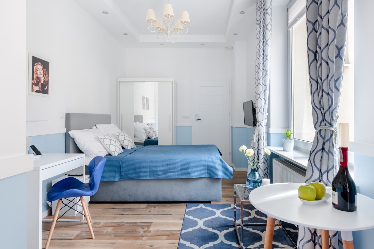Luxe design, ruime studio met snelle wifi in een beveiligd gebouw. Gelegen bij de meest gewilde attracties van Warschau:Copernicus Science Centre, National Library, University of Warsaw en Krakowskie Przedmieście (voetgangersgebied) en dicht bij de rivier de Vistula. Gewoon perfect voor bezoekers die Warschau, het bruisende nachtleven, parken en het culturele stadscentrum willen ontdekken. Comfortabel, queensize bed, goed uitgeruste keuken en gezellige bank.